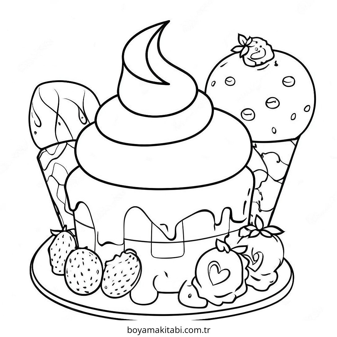 Tatlı temalı bu boyama sayfası çocuklar için sevimli karakter ve sanatsal çalışma bir etkinlik sunar. Ücretsiz olarak indirip yazdırabilir, evde keyifli bir boyama zamanı oluşturabilirsiniz.