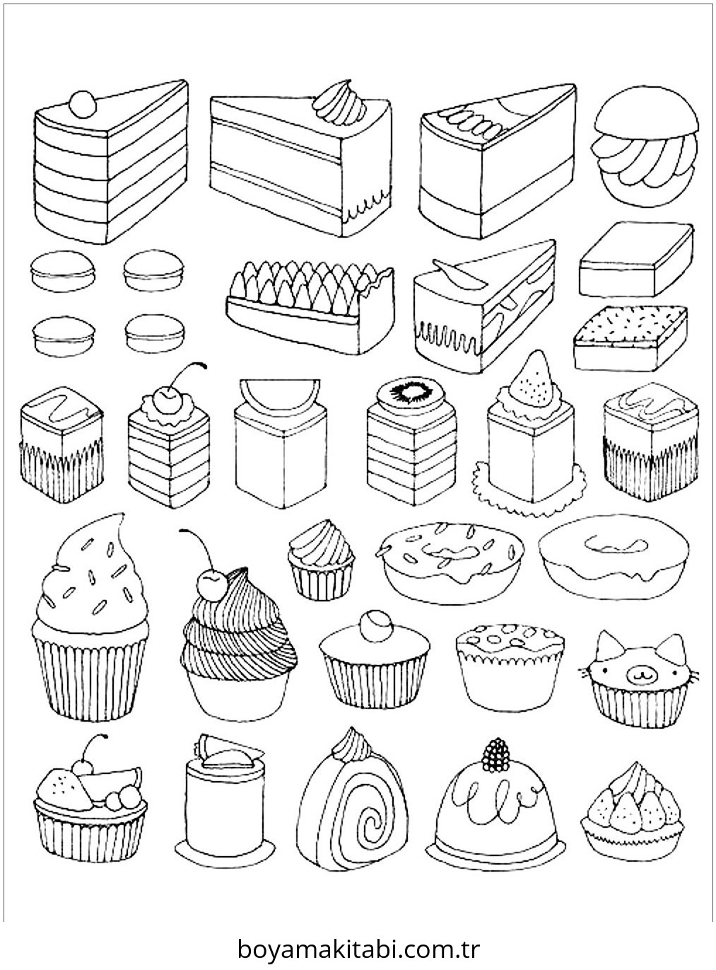 Tatlı temalı bu boyama sayfası çocuklar için eğitici aktivite ve yaratıcılık bir etkinlik sunar. Ücretsiz olarak indirip yazdırabilir, evde keyifli bir boyama zamanı oluşturabilirsiniz.