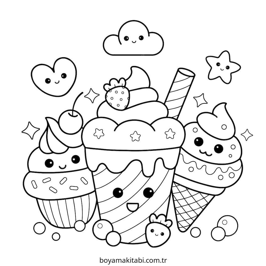 Tatlı temalı bu boyama sayfası çocuklar için kolay boyama ve eğitici aktivite bir etkinlik sunar. Ücretsiz olarak indirip yazdırabilir, evde keyifli bir boyama zamanı oluşturabilirsiniz.