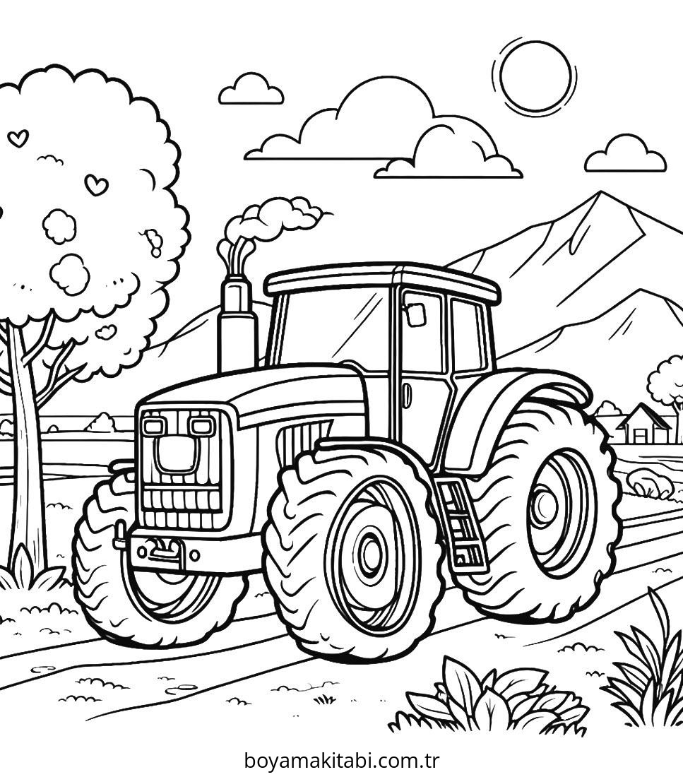 Traktör temalı bu boyama sayfası çocuklar için sevimli karakter ve sanatsal çalışma bir etkinlik sunar. Ücretsiz olarak indirip yazdırabilir, evde keyifli bir boyama zamanı oluşturabilirsiniz.