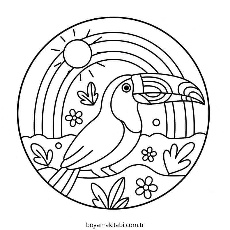 Tukan temalı bu boyama sayfası çocuklar için kolay boyama ve eğitici aktivite bir etkinlik sunar. Ücretsiz olarak indirip yazdırabilir, evde keyifli bir boyama zamanı oluşturabilirsiniz.