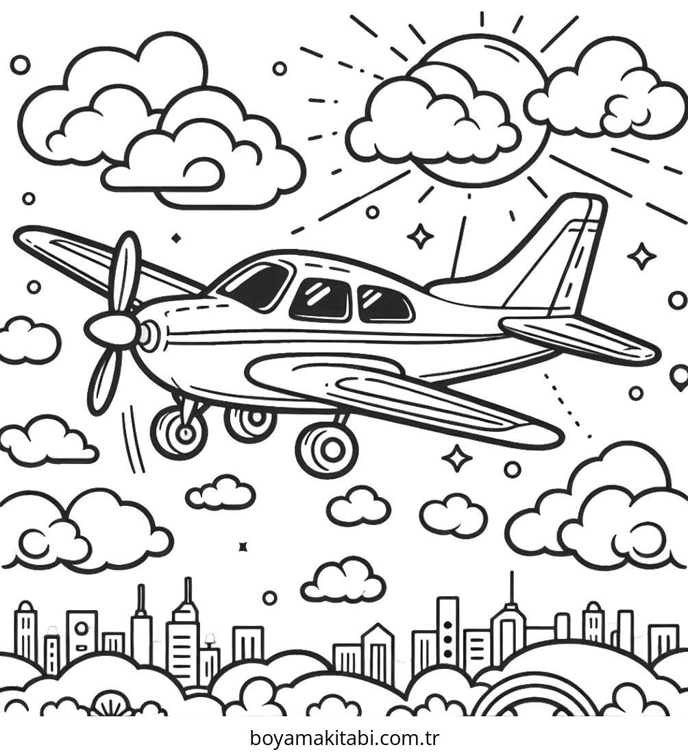 Uçak temalı bu boyama sayfası çocuklar için PDF indir ve sevimli karakter bir etkinlik sunar. Ücretsiz olarak indirip yazdırabilir, evde keyifli bir boyama zamanı oluşturabilirsiniz.