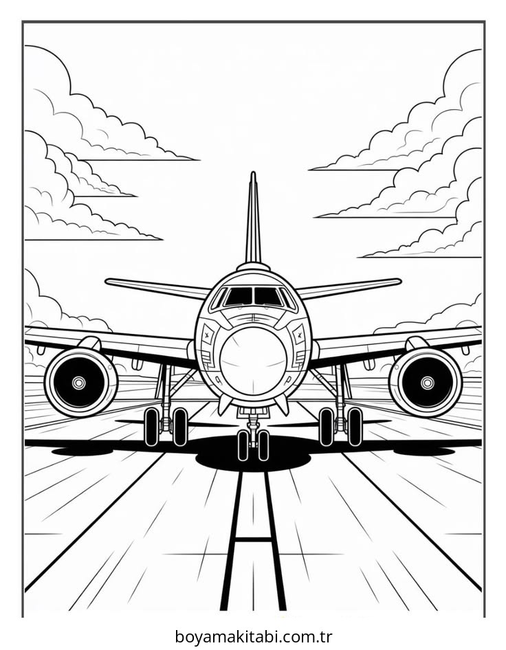 Uçak temalı bu boyama sayfası çocuklar için renkli çizimler ve okul öncesi bir etkinlik sunar. Ücretsiz olarak indirip yazdırabilir, evde keyifli bir boyama zamanı oluşturabilirsiniz.