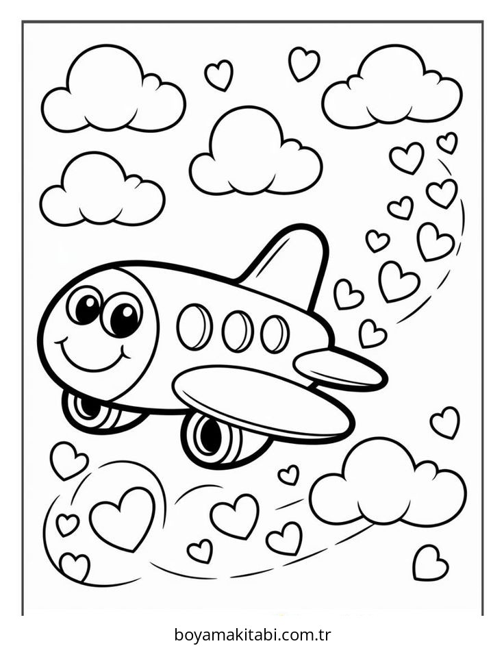 Uçak temalı bu boyama sayfası çocuklar için eğitici aktivite ve yaratıcılık bir etkinlik sunar. Ücretsiz olarak indirip yazdırabilir, evde keyifli bir boyama zamanı oluşturabilirsiniz.