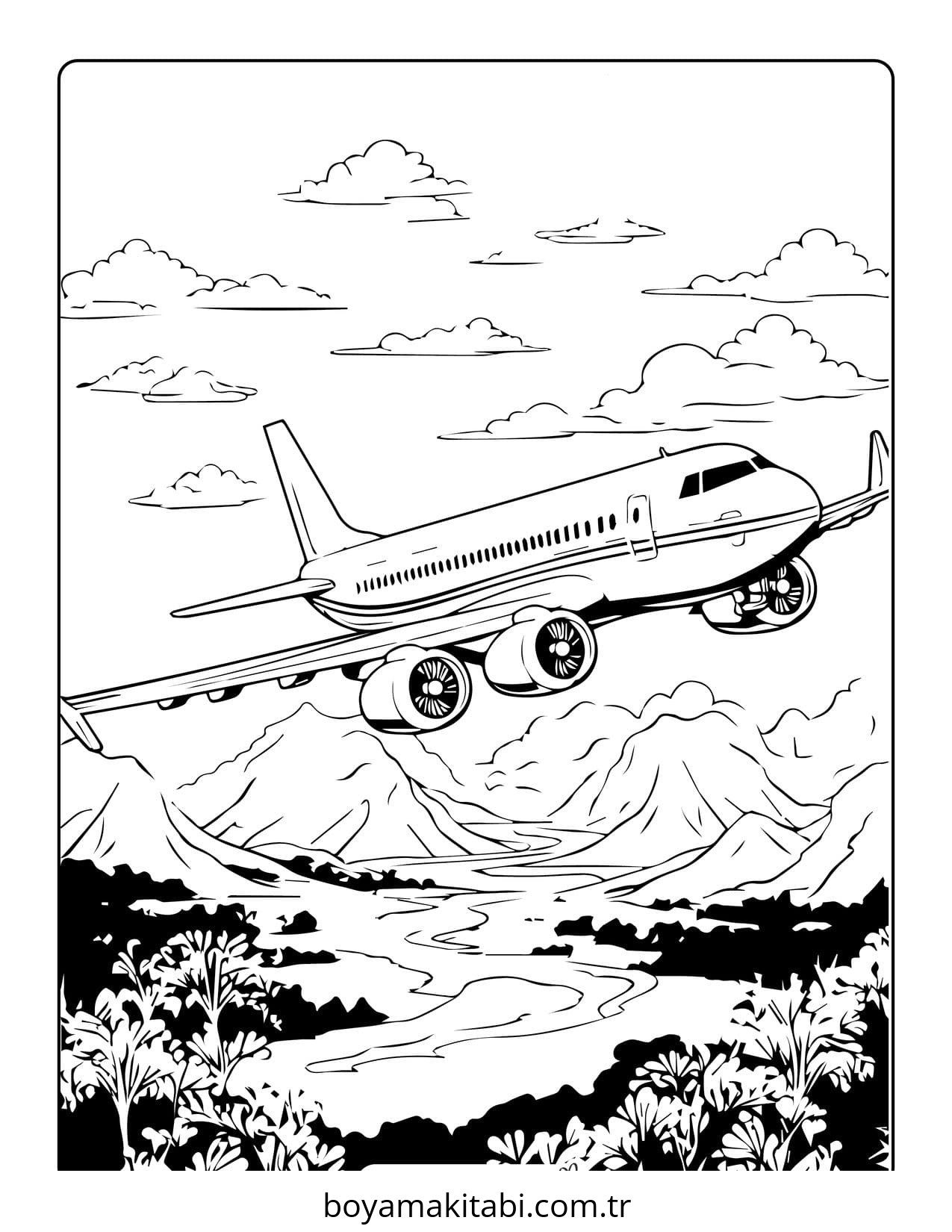 Uçak temalı bu boyama sayfası çocuklar için renkli çizimler ve okul öncesi bir etkinlik sunar. Ücretsiz olarak indirip yazdırabilir, evde keyifli bir boyama zamanı oluşturabilirsiniz.