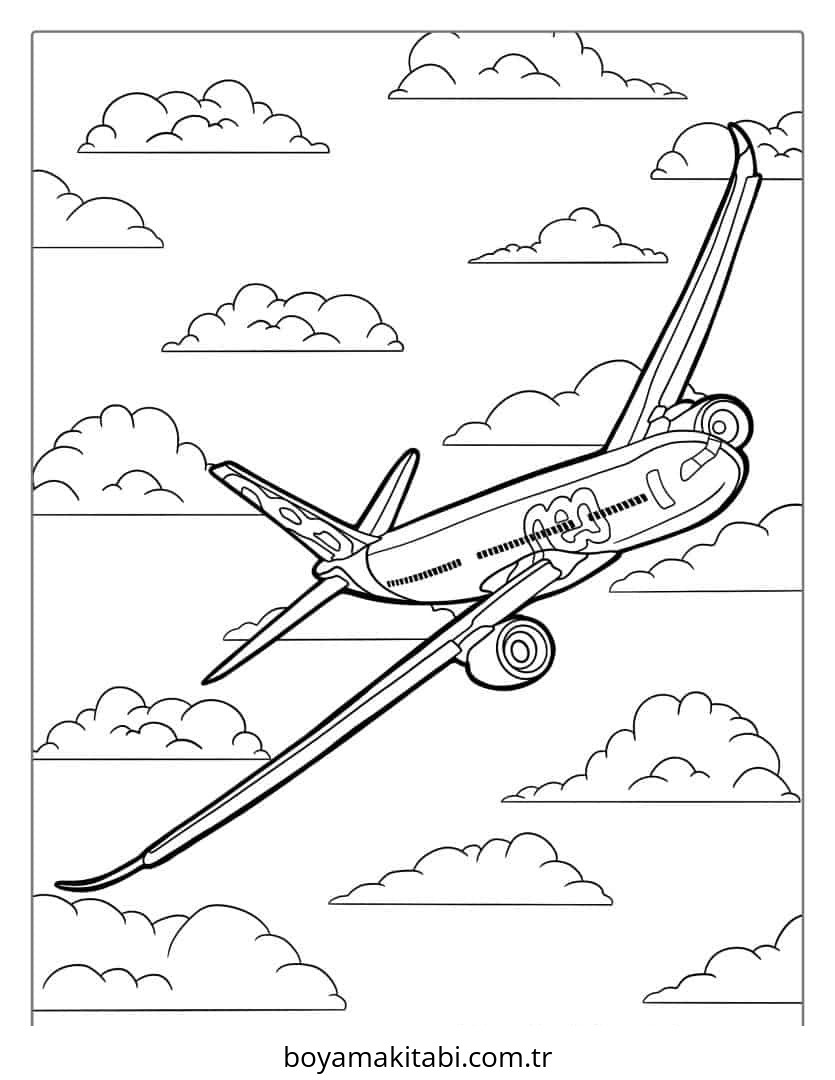 Uçak temalı bu boyama sayfası çocuklar için çocuklar için ve çizgi film temalı bir etkinlik sunar. Ücretsiz olarak indirip yazdırabilir, evde keyifli bir boyama zamanı oluşturabilirsiniz.