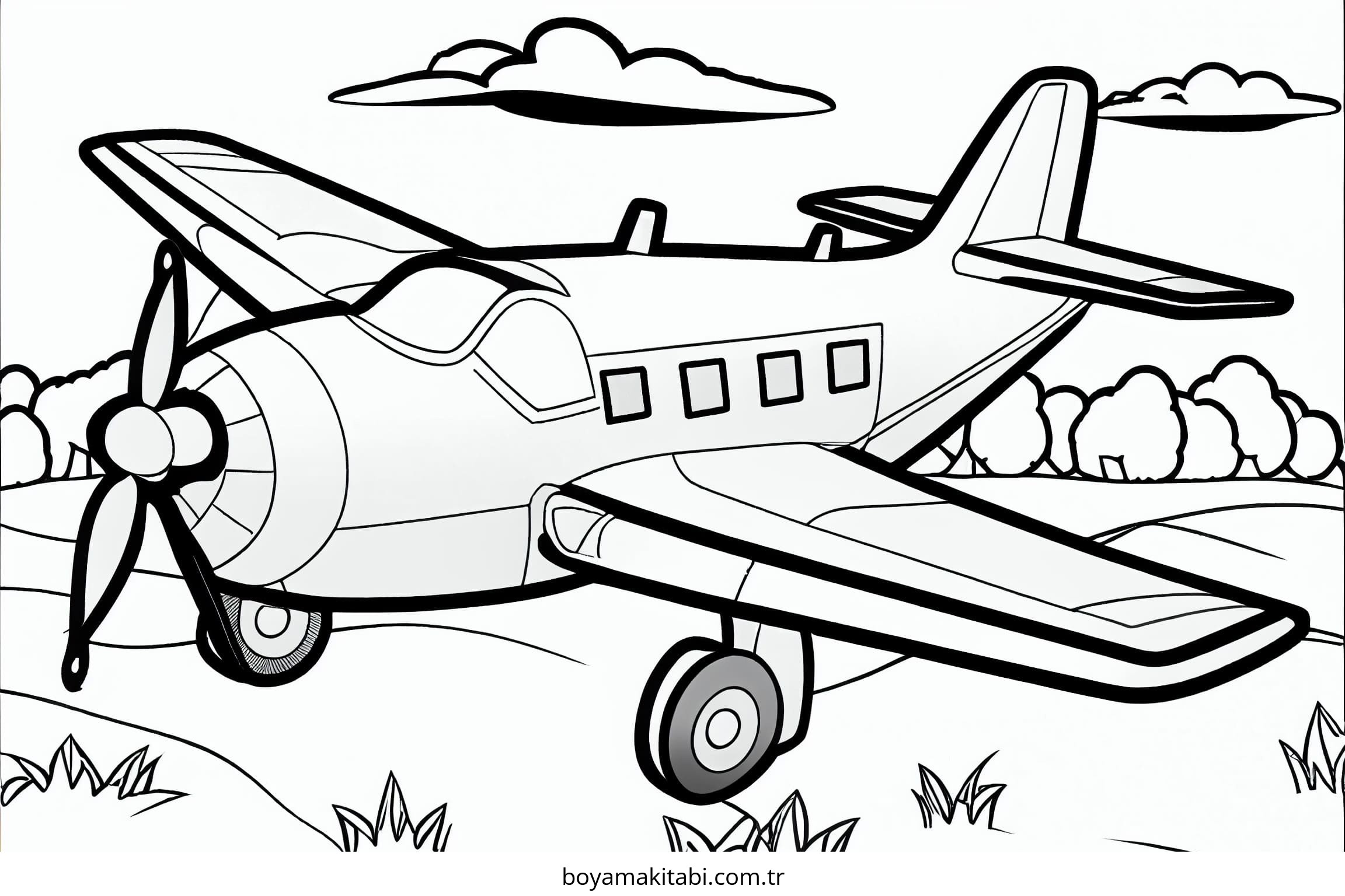 Uçak temalı bu boyama sayfası çocuklar için boyama etkinliği ve çocuk aktivitesi bir etkinlik sunar. Ücretsiz olarak indirip yazdırabilir, evde keyifli bir boyama zamanı oluşturabilirsiniz.