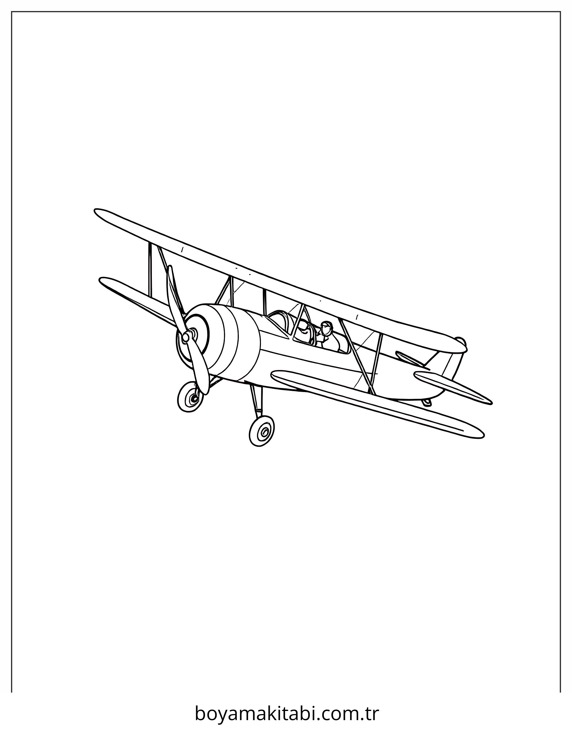 Uçak temalı bu boyama sayfası çocuklar için eğitici aktivite ve yaratıcılık bir etkinlik sunar. Ücretsiz olarak indirip yazdırabilir, evde keyifli bir boyama zamanı oluşturabilirsiniz.