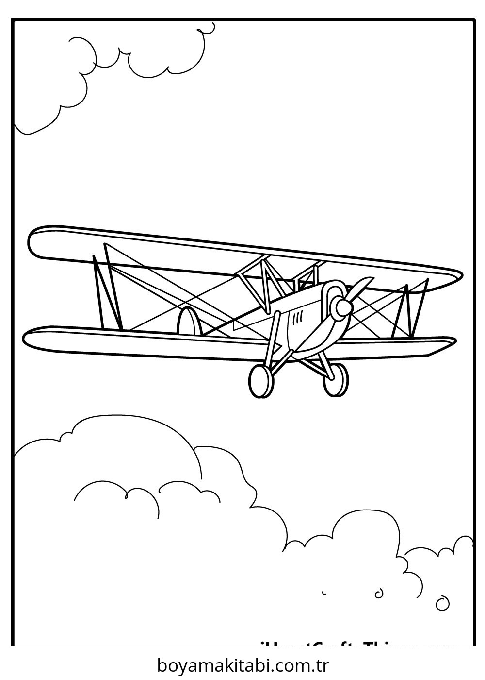 Uçak temalı bu boyama sayfası çocuklar için basit çizim ve kolay boyama bir etkinlik sunar. Ücretsiz olarak indirip yazdırabilir, evde keyifli bir boyama zamanı oluşturabilirsiniz.