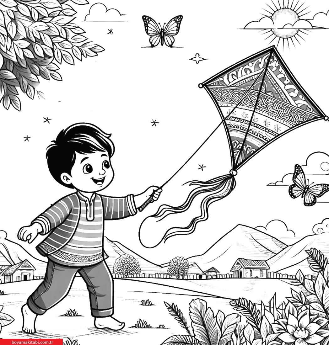 Uçurtma Boyama Sayfaları ve Eğlenceli Etkinlikler. Uçurtma Eğlenceli Boyama Sayfaları, Uçurtma boyama sayfası, coloring page, masalsı, kolay, basit