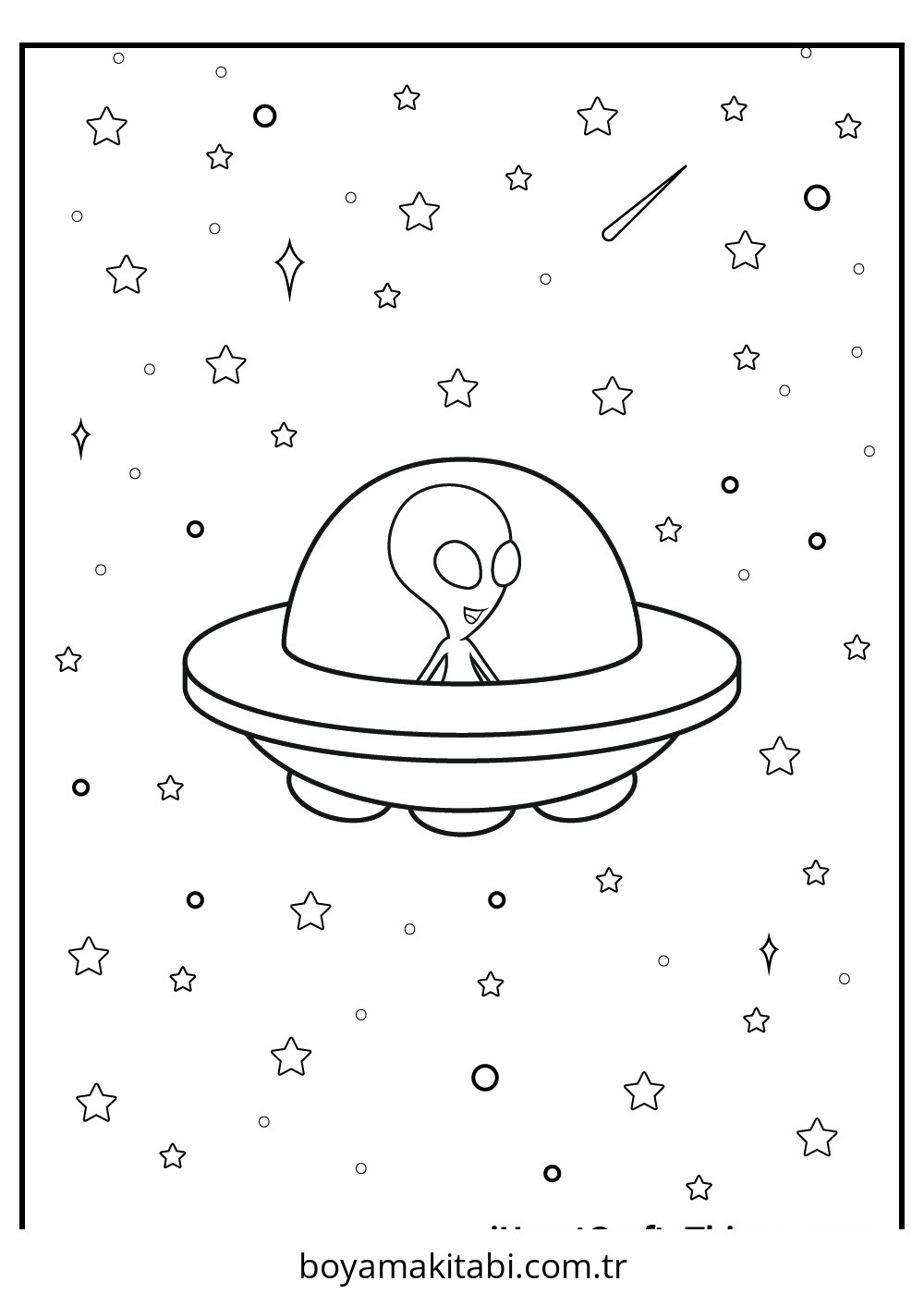 Uzaylı temalı bu boyama sayfası çocuklar için çizgi film temalı ve basit çizim bir etkinlik sunar. Ücretsiz olarak indirip yazdırabilir, evde keyifli bir boyama zamanı oluşturabilirsiniz.