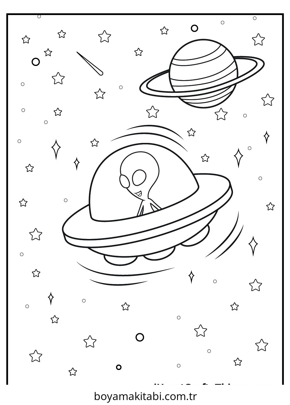 Uzaylı temalı bu boyama sayfası çocuklar için basit çizim ve kolay boyama bir etkinlik sunar. Ücretsiz olarak indirip yazdırabilir, evde keyifli bir boyama zamanı oluşturabilirsiniz.