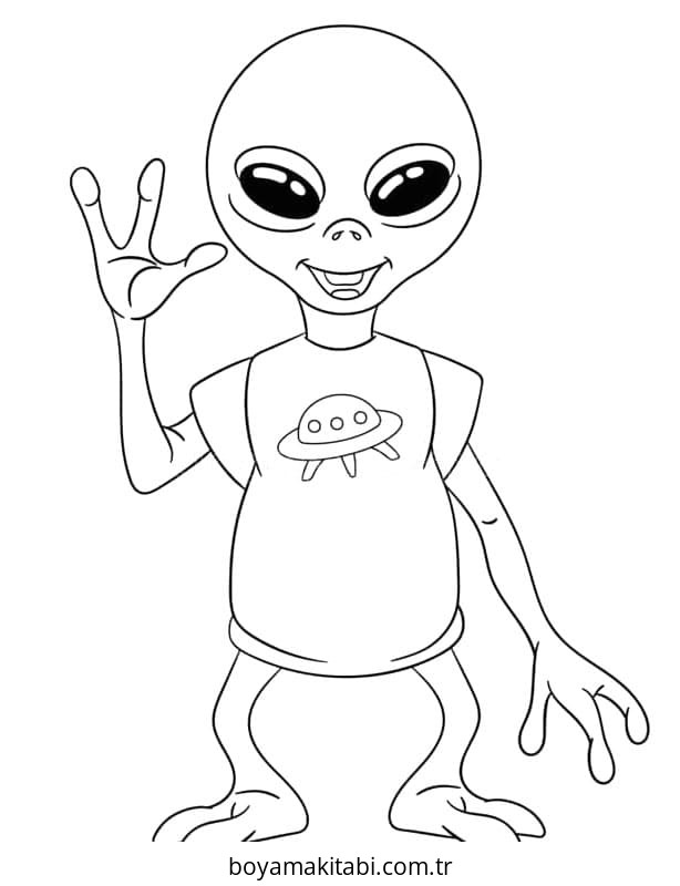 Uzaylılar temalı bu boyama sayfası çocuklar için basit çizim ve kolay boyama bir etkinlik sunar. Ücretsiz olarak indirip yazdırabilir, evde keyifli bir boyama zamanı oluşturabilirsiniz.