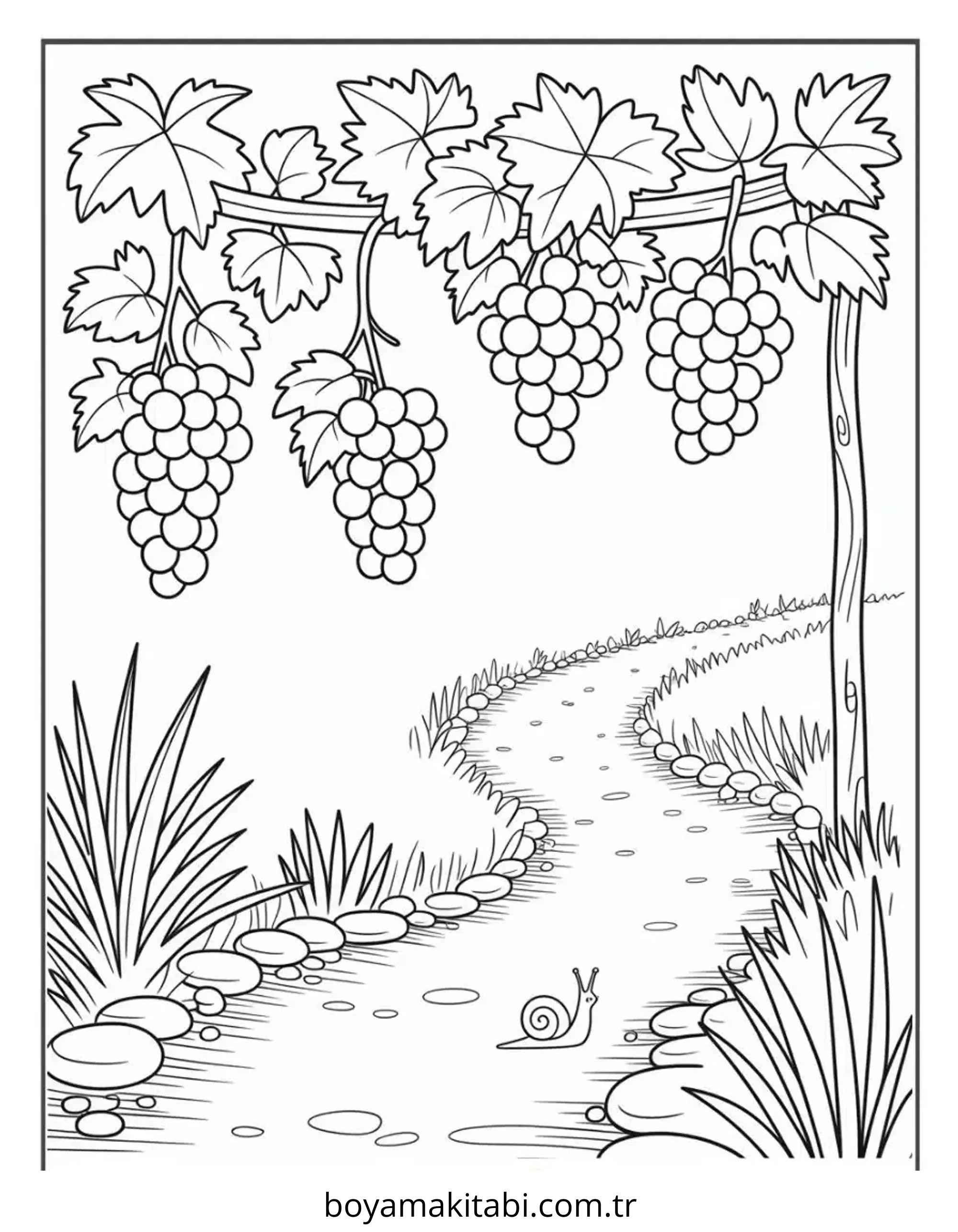 Üzümler temalı bu boyama sayfası çocuklar için evde etkinlik ve ücretsiz yazdır bir etkinlik sunar. Ücretsiz olarak indirip yazdırabilir, evde keyifli bir boyama zamanı oluşturabilirsiniz.