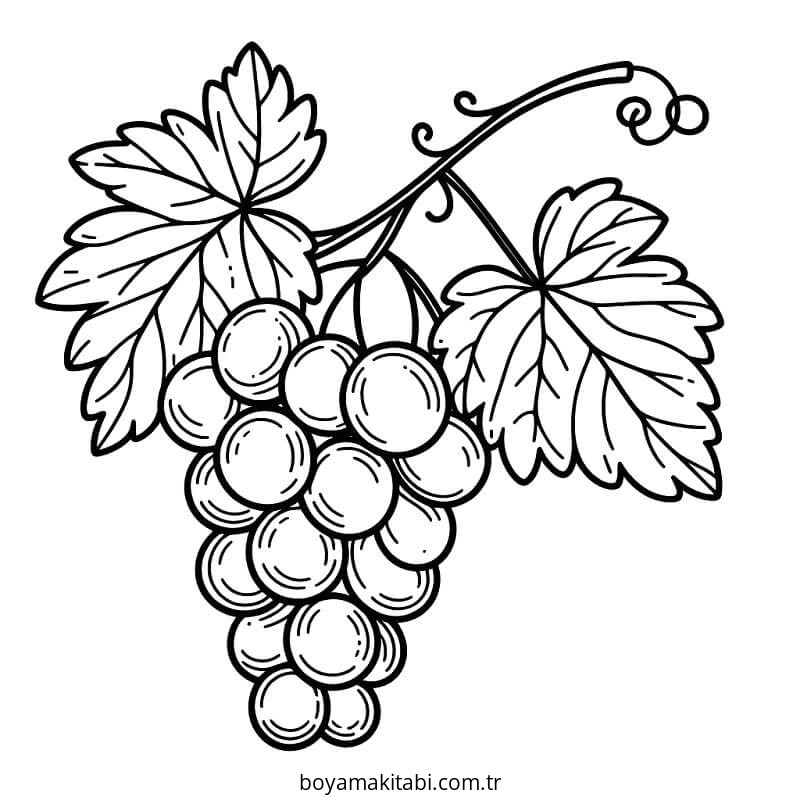 Üzümler temalı bu boyama sayfası çocuklar için sanatsal çalışma ve çocuklar için bir etkinlik sunar. Ücretsiz olarak indirip yazdırabilir, evde keyifli bir boyama zamanı oluşturabilirsiniz.