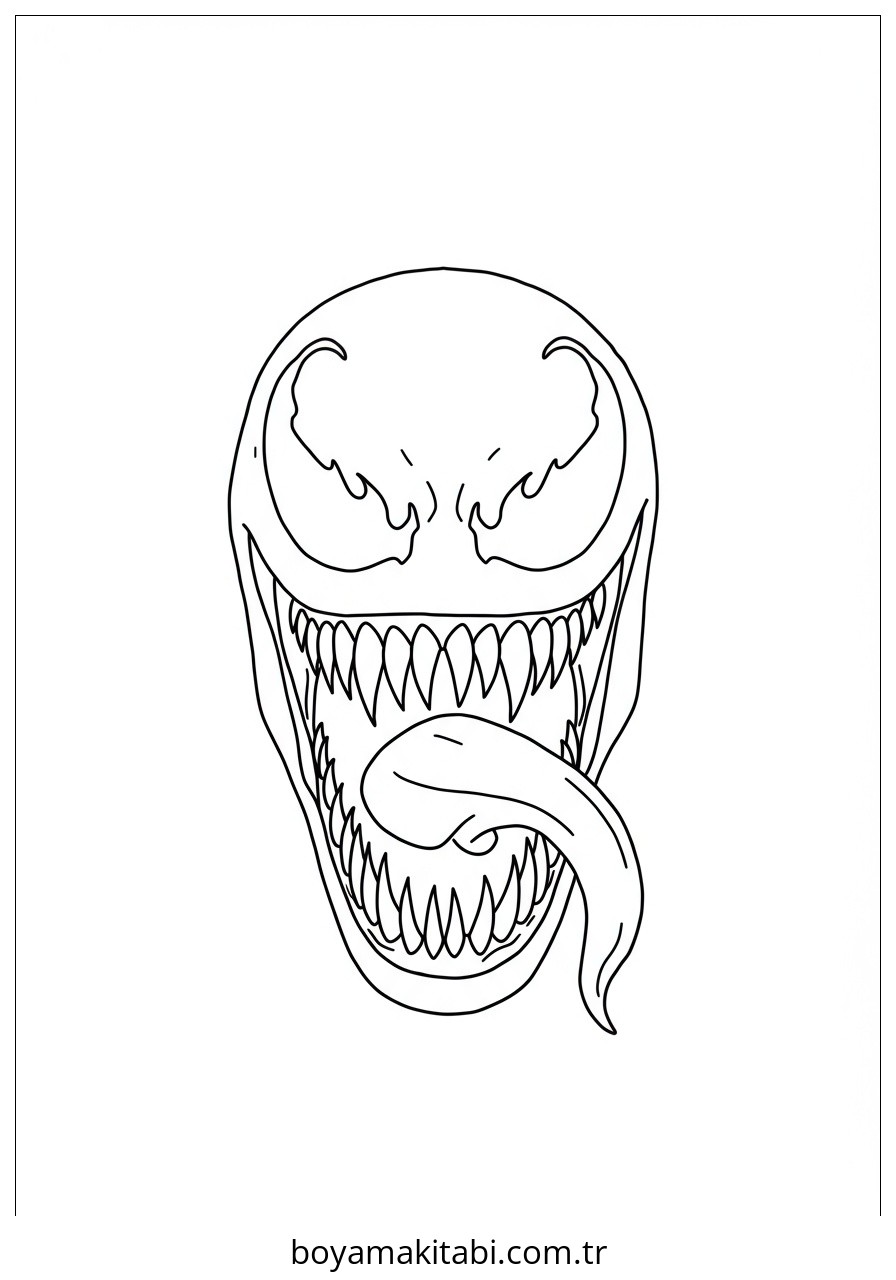 Venom temalı bu boyama sayfası çocuklar için el becerilerini geliştirir ve boyama çalışması bir etkinlik sunar. Ücretsiz olarak indirip yazdırabilir, evde keyifli bir boyama zamanı oluşturabilirsiniz.