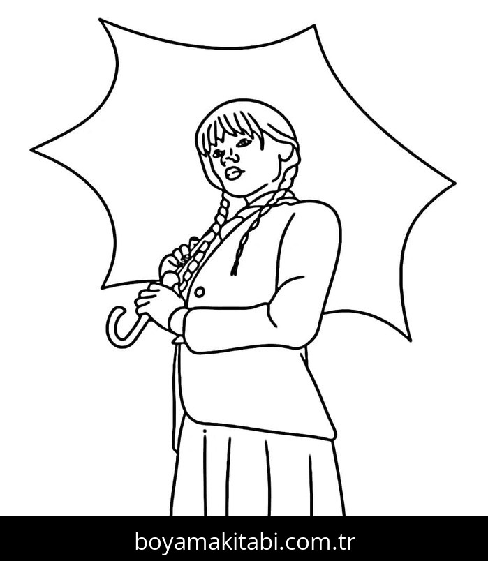 Wednesday Addams temalı bu boyama sayfası çocuklar için renkli çizimler ve okul öncesi bir etkinlik sunar. Ücretsiz olarak indirip yazdırabilir, evde keyifli bir boyama zamanı oluşturabilirsiniz.