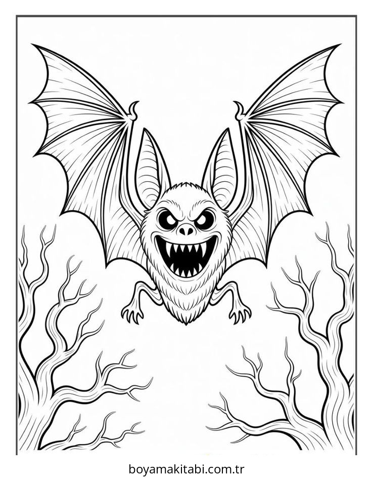 Yarasa temalı bu boyama sayfası çocuklar için el becerilerini geliştirir ve boyama çalışması bir etkinlik sunar. Ücretsiz olarak indirip yazdırabilir, evde keyifli bir boyama zamanı oluşturabilirsiniz.