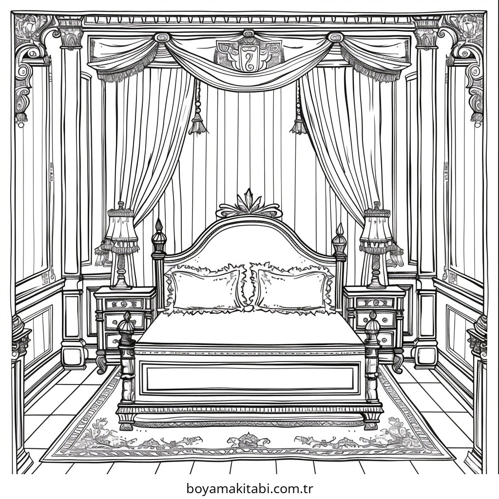 Yatak Odası temalı bu boyama sayfası çocuklar için keyifli zaman ve renkli çizimler bir etkinlik sunar. Ücretsiz olarak indirip yazdırabilir, evde keyifli bir boyama zamanı oluşturabilirsiniz.