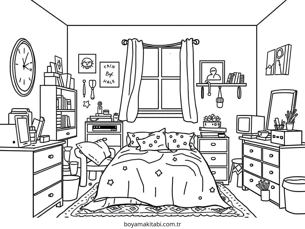 Yatak Odası Boyama Sayfası
