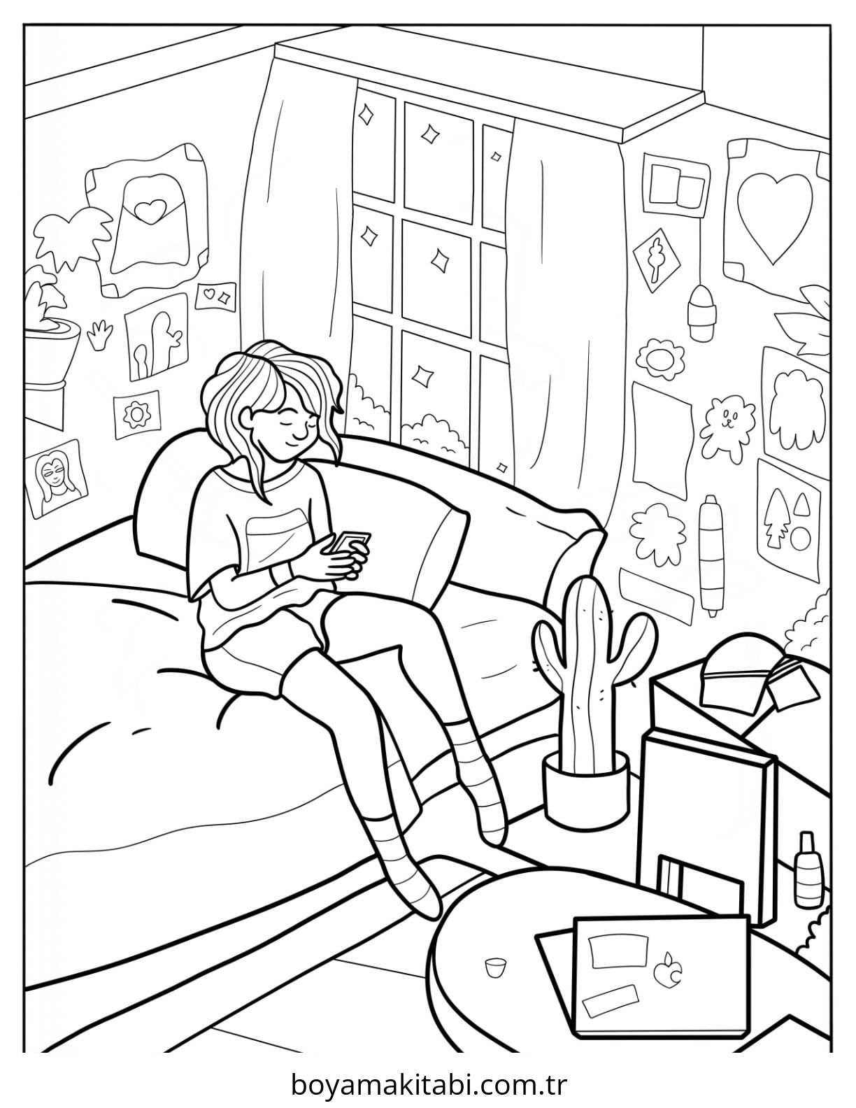 Yatak Odası temalı bu boyama sayfası çocuklar için sanatsal çalışma ve çocuklar için bir etkinlik sunar. Ücretsiz olarak indirip yazdırabilir, evde keyifli bir boyama zamanı oluşturabilirsiniz.
