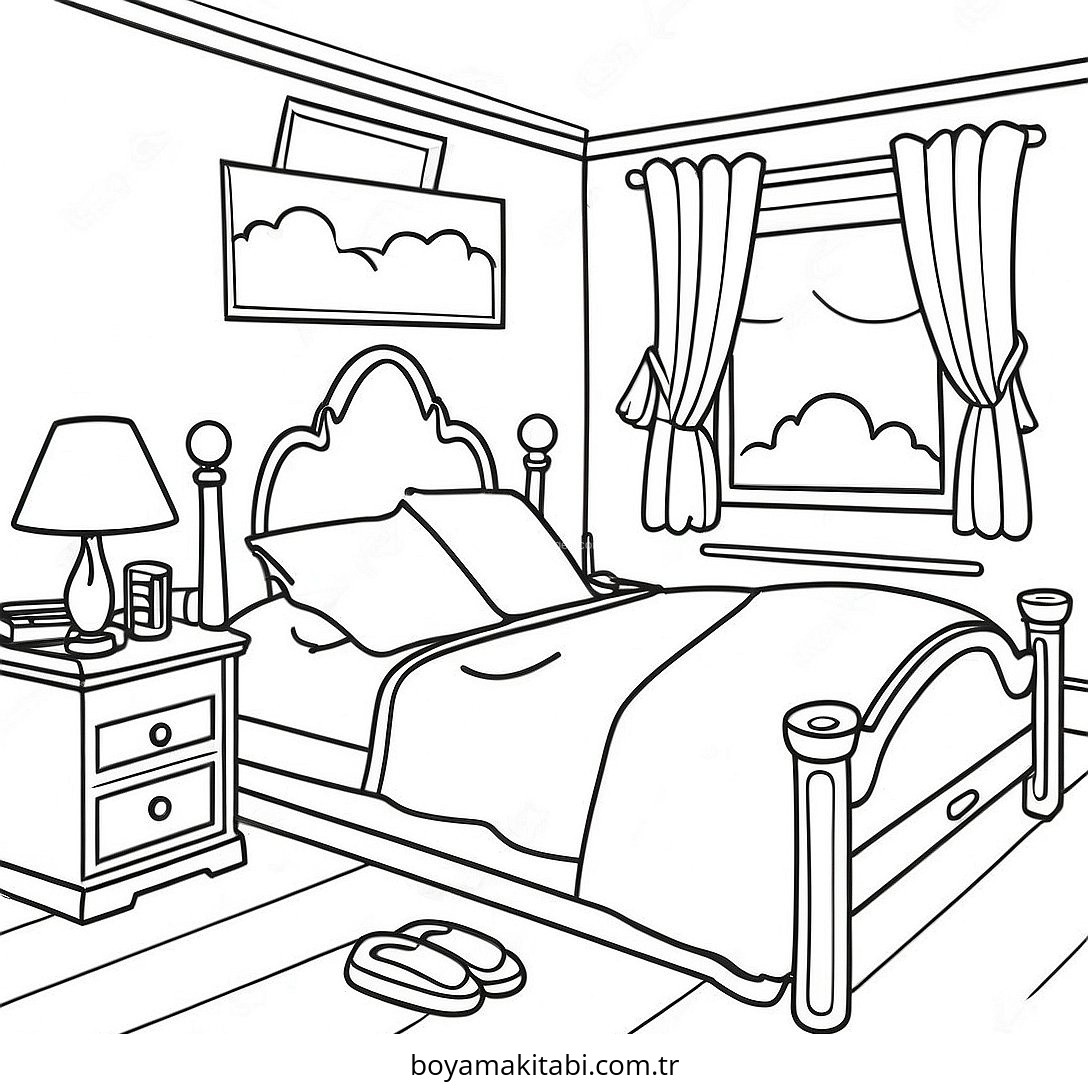 Yatak Odası temalı bu boyama sayfası çocuklar için ücretsiz yazdır ve boyama etkinliği bir etkinlik sunar. Ücretsiz olarak indirip yazdırabilir, evde keyifli bir boyama zamanı oluşturabilirsiniz.