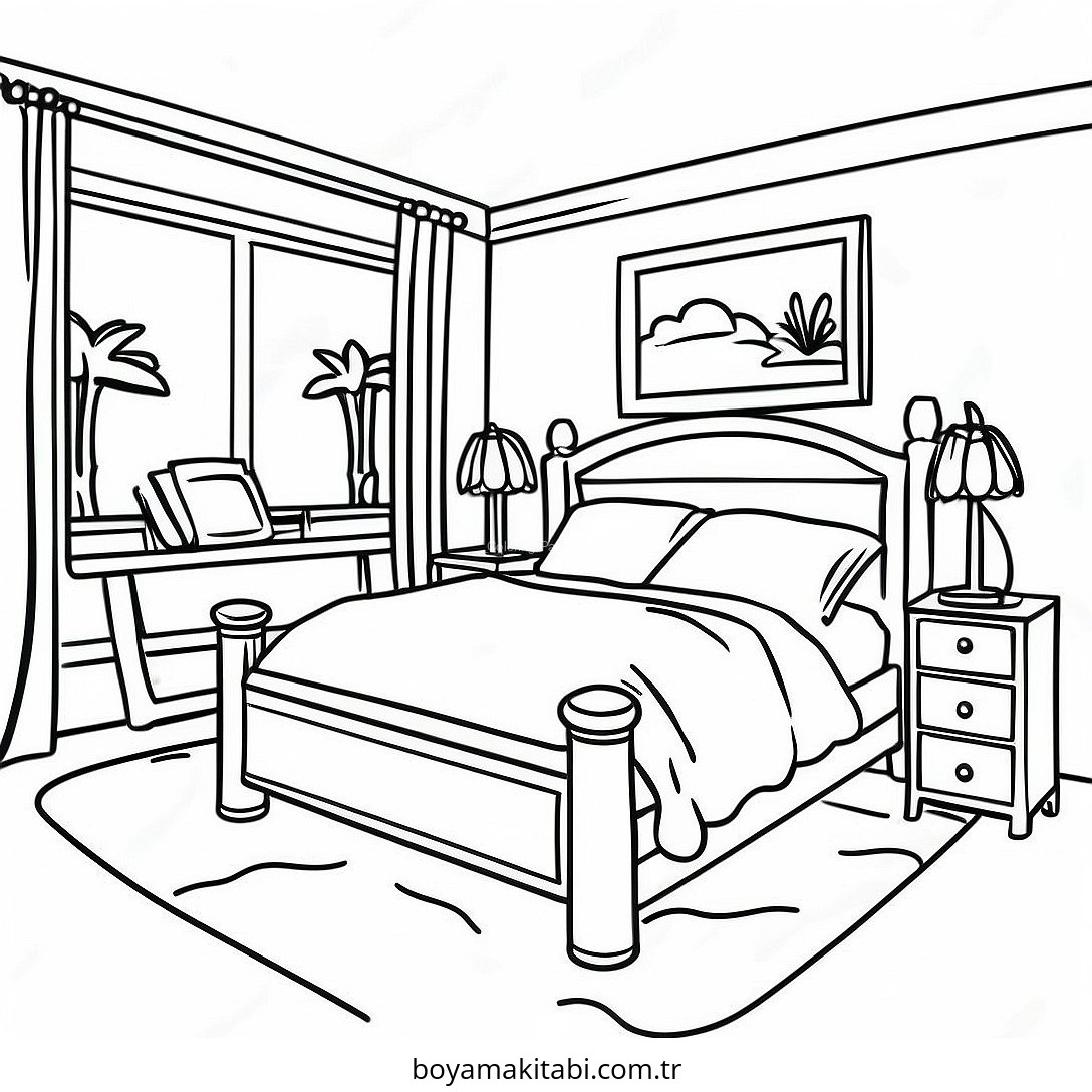 Yatak Odası temalı bu boyama sayfası çocuklar için PDF indir ve sevimli karakter bir etkinlik sunar. Ücretsiz olarak indirip yazdırabilir, evde keyifli bir boyama zamanı oluşturabilirsiniz.