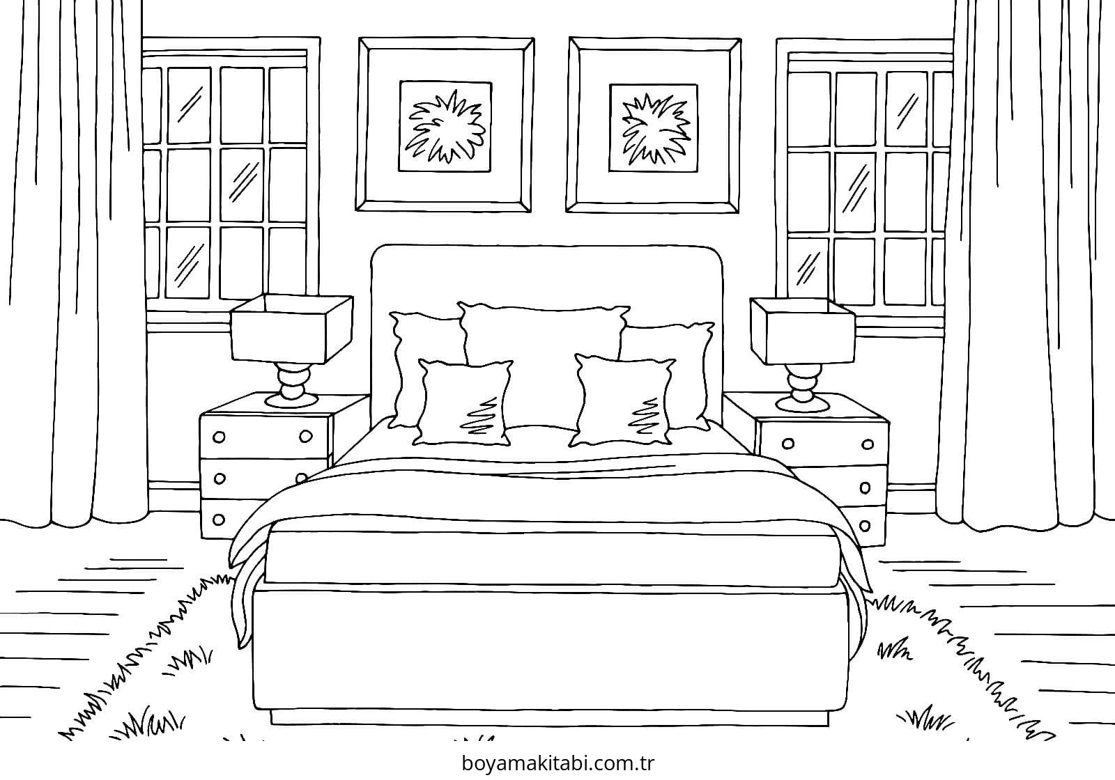 Yatak Odası Boyama Sayfası
