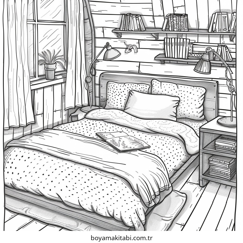 Yatak Odası Boyama Sayfası