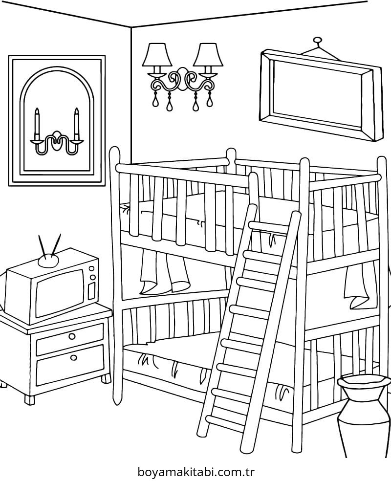 Yatak Odası temalı bu boyama sayfası çocuklar için ücretsiz yazdır ve boyama etkinliği bir etkinlik sunar. Ücretsiz olarak indirip yazdırabilir, evde keyifli bir boyama zamanı oluşturabilirsiniz.