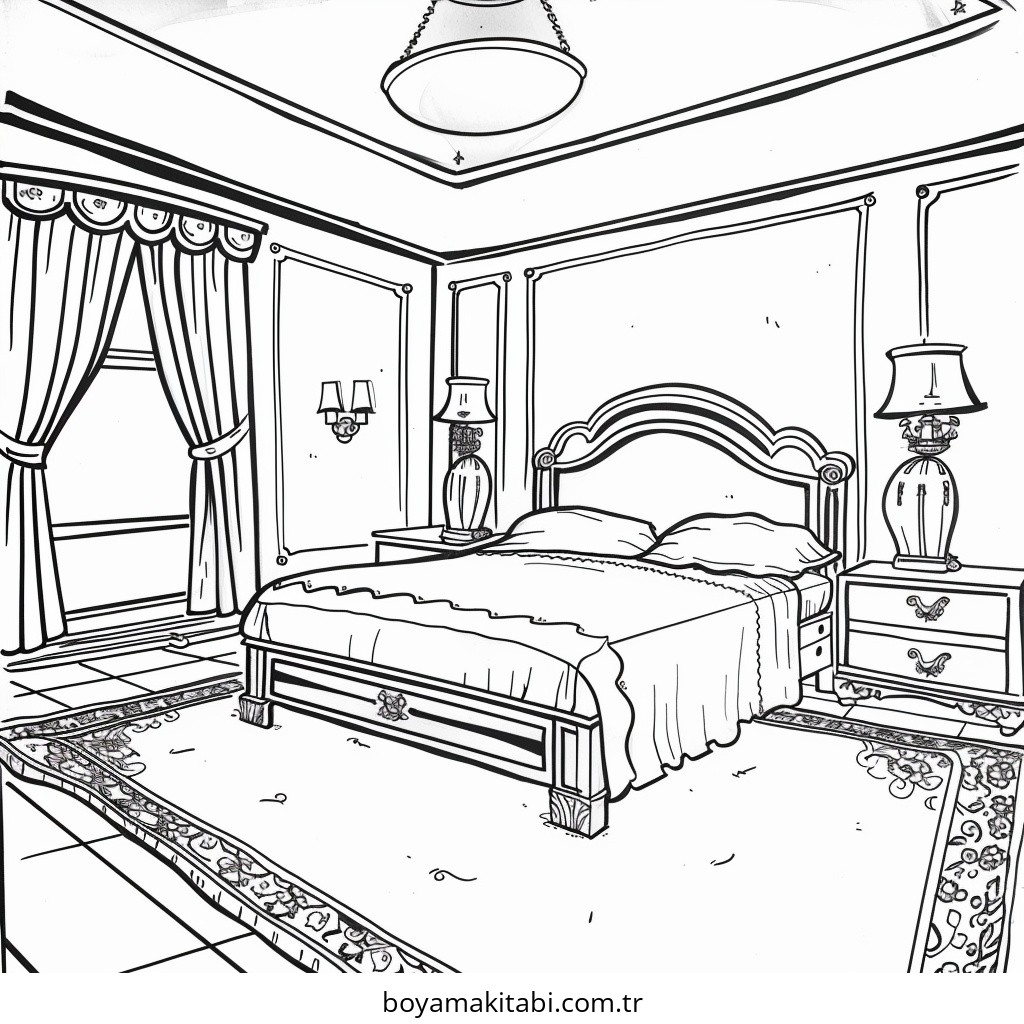 Yatak Odası temalı bu boyama sayfası çocuklar için eğitici aktivite ve yaratıcılık bir etkinlik sunar. Ücretsiz olarak indirip yazdırabilir, evde keyifli bir boyama zamanı oluşturabilirsiniz.