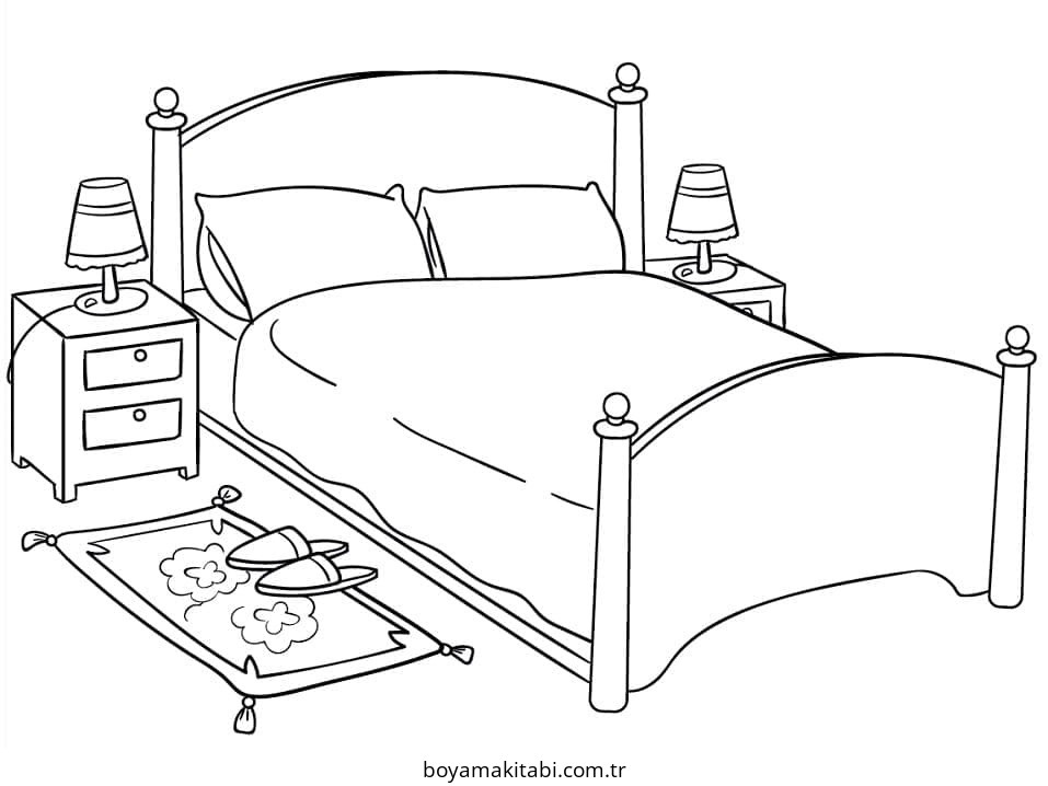 Yatak Odası temalı bu boyama sayfası çocuklar için keyifli zaman ve renkli çizimler bir etkinlik sunar. Ücretsiz olarak indirip yazdırabilir, evde keyifli bir boyama zamanı oluşturabilirsiniz.