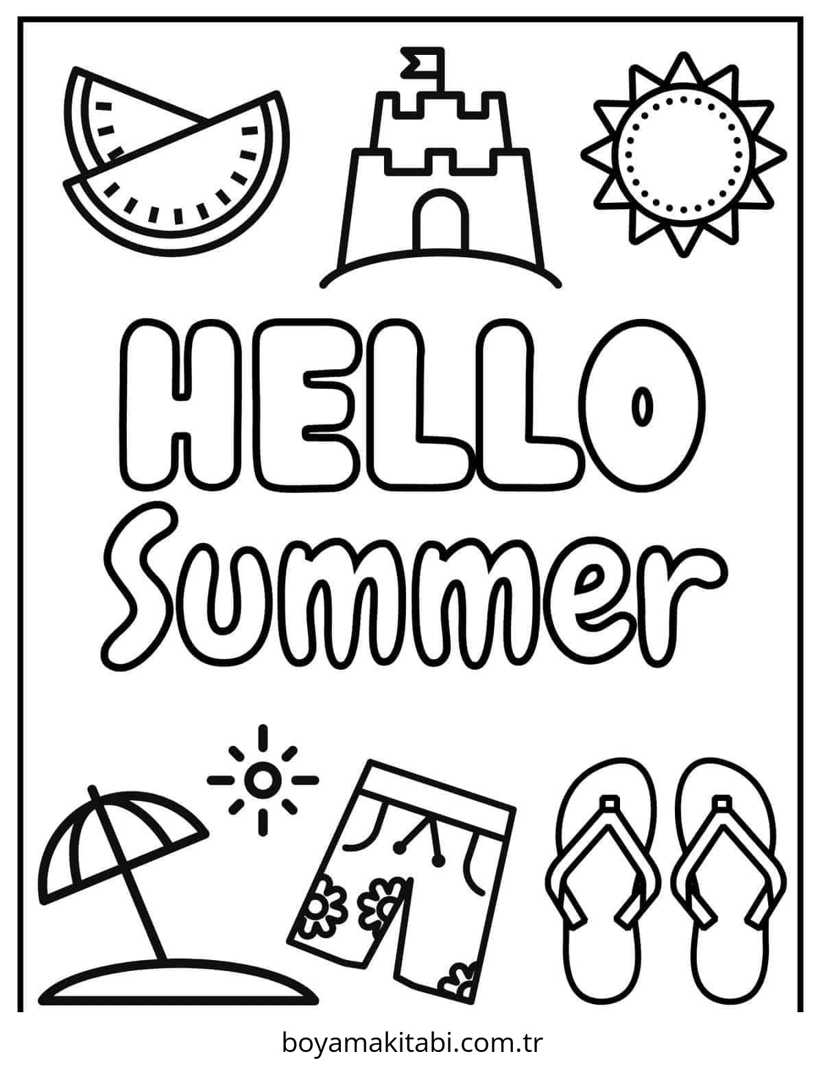 Yaz temalı bu boyama sayfası çocuklar için el becerilerini geliştirir ve boyama çalışması bir etkinlik sunar. Ücretsiz olarak indirip yazdırabilir, evde keyifli bir boyama zamanı oluşturabilirsiniz.