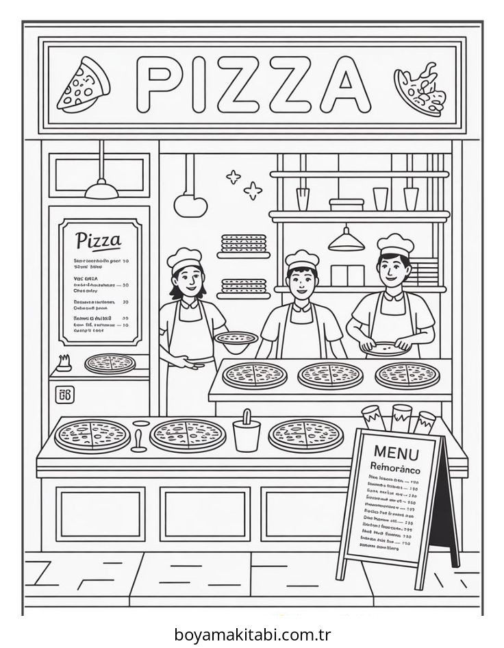Yemek temalı bu boyama sayfası çocuklar için el becerilerini geliştirir ve boyama çalışması bir etkinlik sunar. Ücretsiz olarak indirip yazdırabilir, evde keyifli bir boyama zamanı oluşturabilirsiniz.