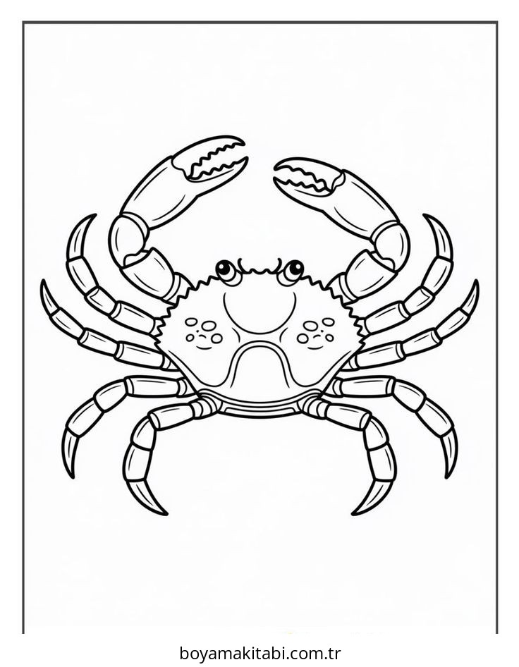 Yengeç temalı bu boyama sayfası çocuklar için yaratıcılık ve eğlenceli etkinlik bir etkinlik sunar. Ücretsiz olarak indirip yazdırabilir, evde keyifli bir boyama zamanı oluşturabilirsiniz.
