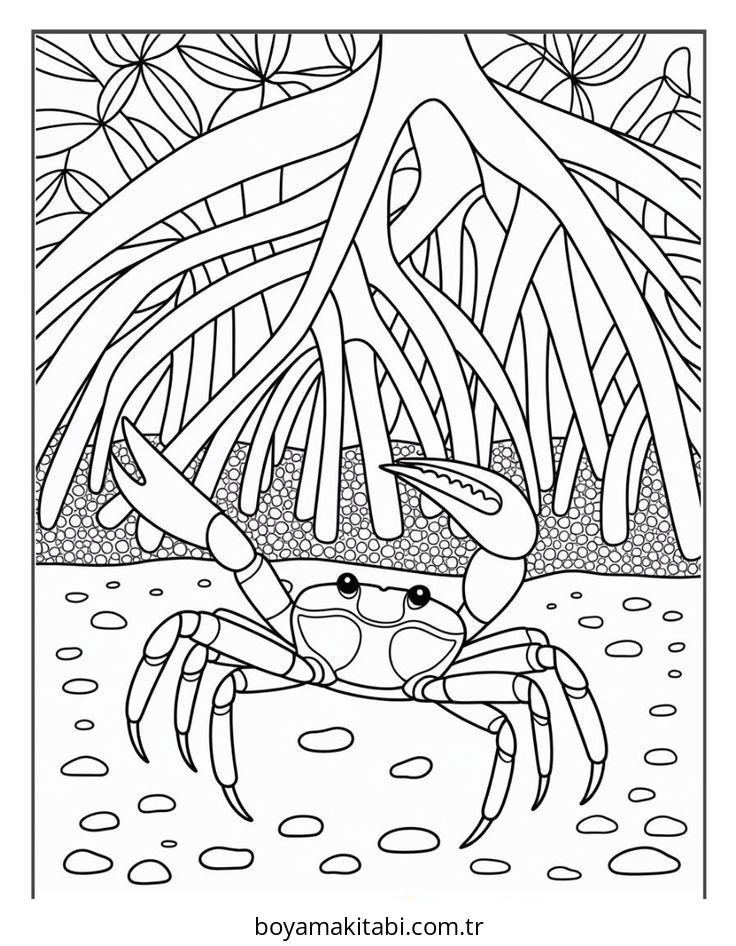 Yengeç temalı bu boyama sayfası çocuklar için renkli çizimler ve okul öncesi bir etkinlik sunar. Ücretsiz olarak indirip yazdırabilir, evde keyifli bir boyama zamanı oluşturabilirsiniz.