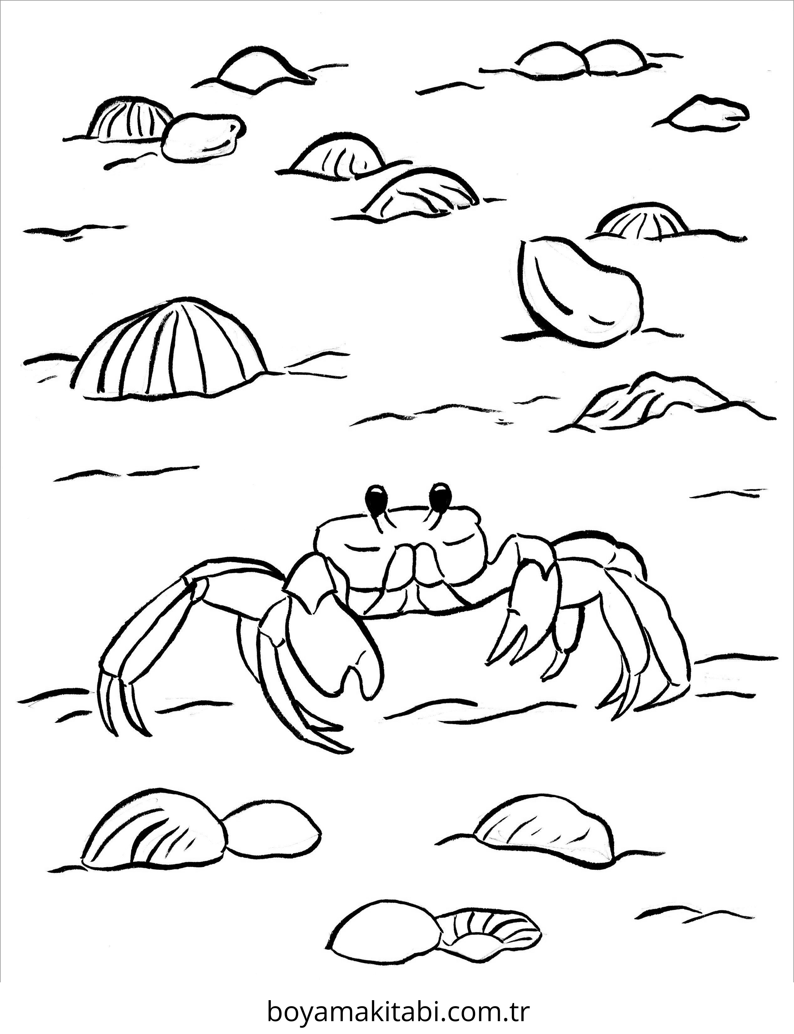 Yengeç temalı bu boyama sayfası çocuklar için renkli çizimler ve okul öncesi bir etkinlik sunar. Ücretsiz olarak indirip yazdırabilir, evde keyifli bir boyama zamanı oluşturabilirsiniz.