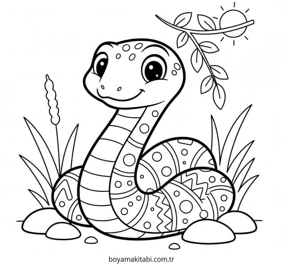 Yılan temalı bu boyama sayfası çocuklar için okul öncesi ve evde etkinlik bir etkinlik sunar. Ücretsiz olarak indirip yazdırabilir, evde keyifli bir boyama zamanı oluşturabilirsiniz.