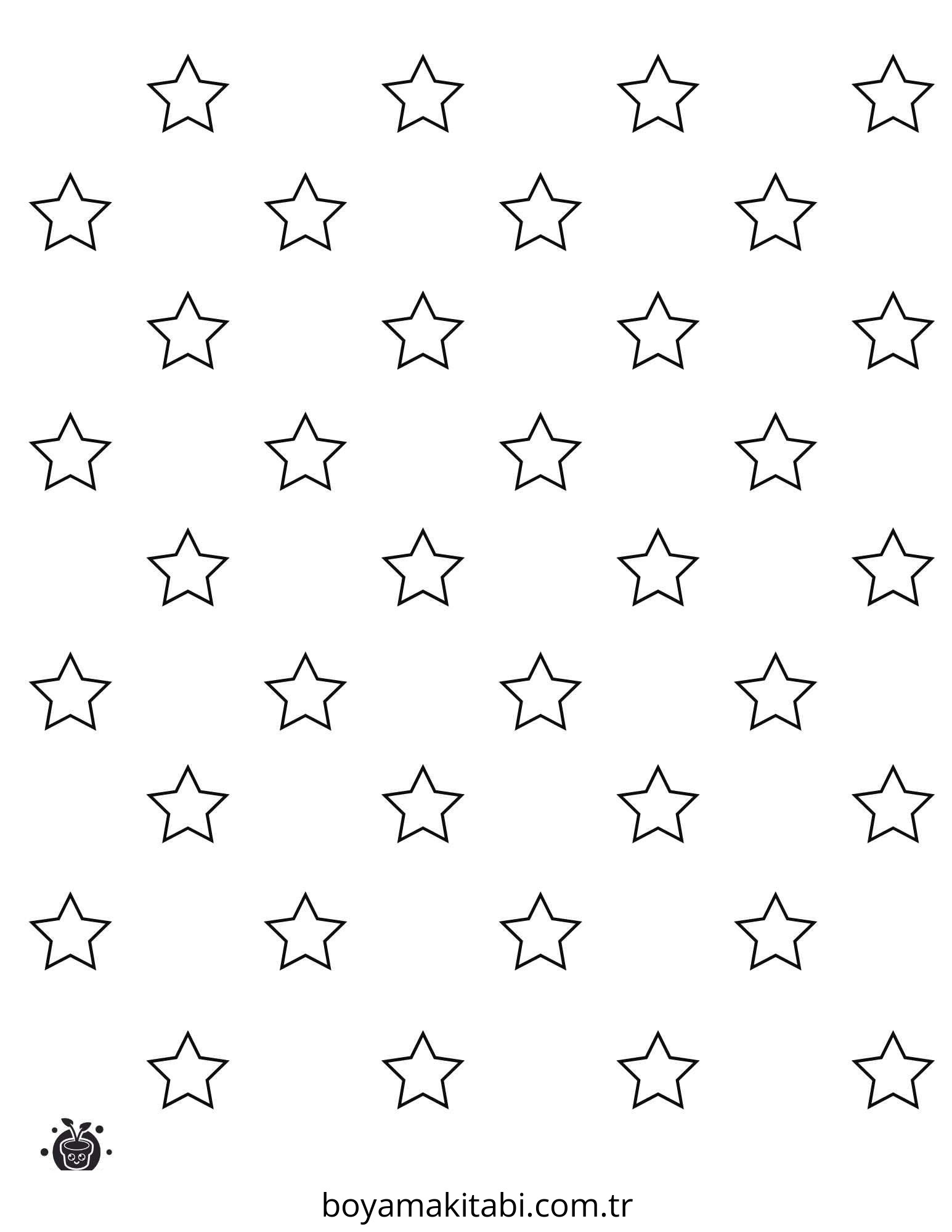 Yıldız temalı bu boyama sayfası çocuklar için okul öncesi ve evde etkinlik bir etkinlik sunar. Ücretsiz olarak indirip yazdırabilir, evde keyifli bir boyama zamanı oluşturabilirsiniz.