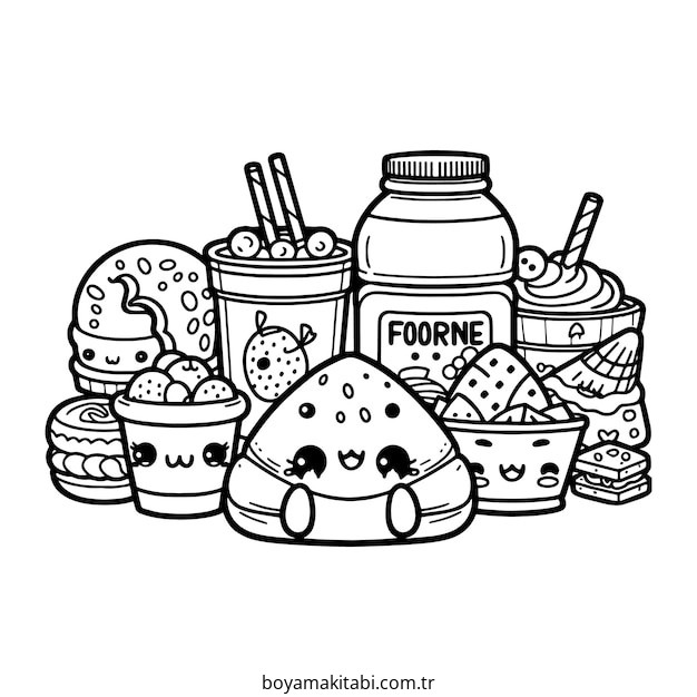 Yiyecekler temalı bu boyama sayfası çocuklar için okul öncesi ve evde etkinlik bir etkinlik sunar. Ücretsiz olarak indirip yazdırabilir, evde keyifli bir boyama zamanı oluşturabilirsiniz.