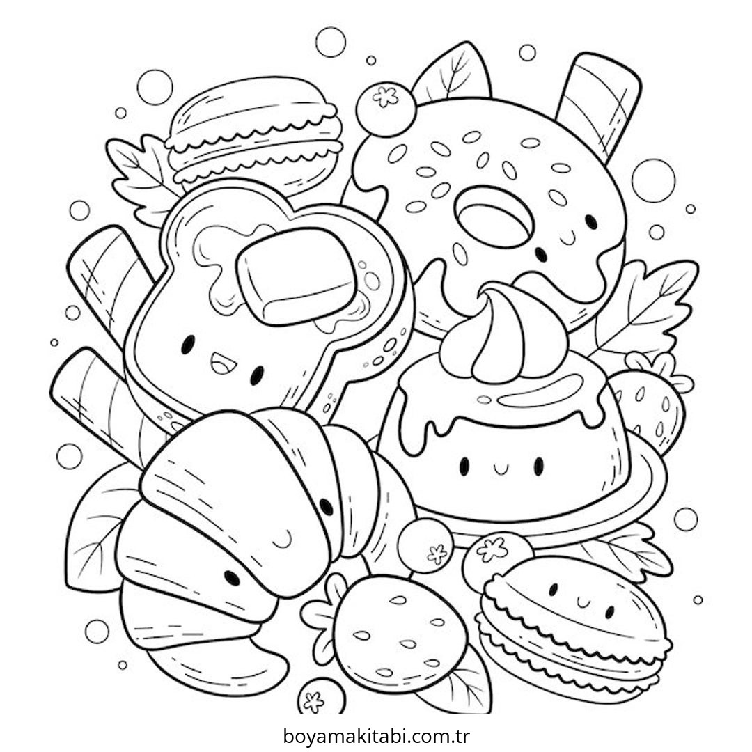 Yiyecekler temalı bu boyama sayfası çocuklar için basit çizim ve kolay boyama bir etkinlik sunar. Ücretsiz olarak indirip yazdırabilir, evde keyifli bir boyama zamanı oluşturabilirsiniz.