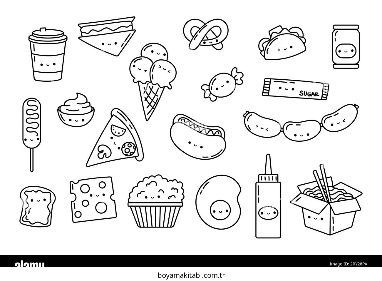 Yiyecekler temalı bu boyama sayfası çocuklar için çocuklar için ve çizgi film temalı bir etkinlik sunar. Ücretsiz olarak indirip yazdırabilir, evde keyifli bir boyama zamanı oluşturabilirsiniz.